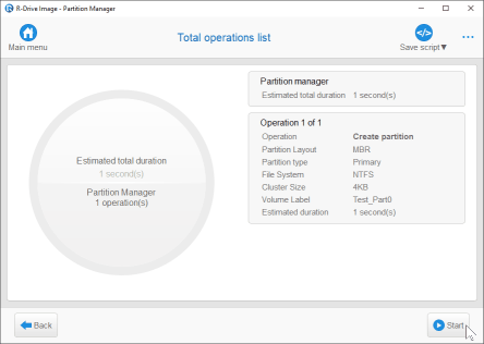 5. Кликните по кнопке Start и ожидайте пока R-Drive Image выполнит эти операции.